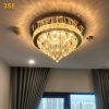 Phòng khách là không gian đón tiếp khách và cũng là nơi gia đình quây quần bên nhau. Ánh sáng từ đèn ốp trần pha lê sẽ tạo không khí ấm cúng, sang trọng, đồng thời làm nổi bật các chi tiết trang trí khác trong phòng.