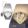 - Chất liệu cao cấp: Được chế tác từ pha lê K9 cao cấp cùng với khung thép không gỉ mạ chrome sáng bóng, đảm bảo độ bền và tính thẩm mỹ lâu dài.